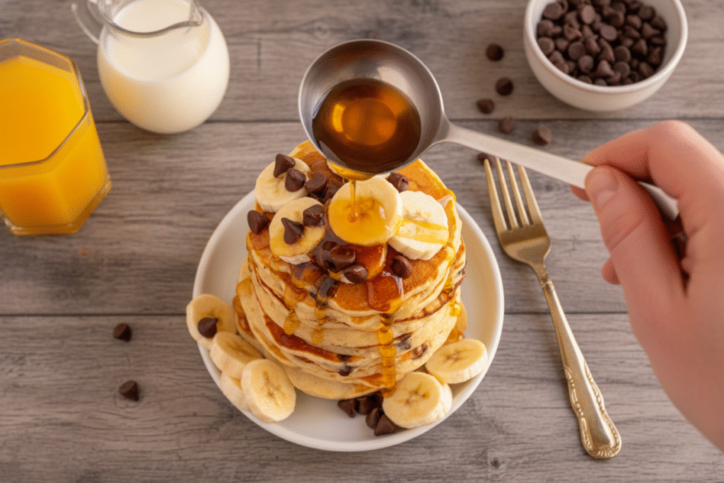 These pancakes taste like a weekend morning. The banana and chocolate are a classic pair. They just belong together. Serve them warm, right off the griddle.