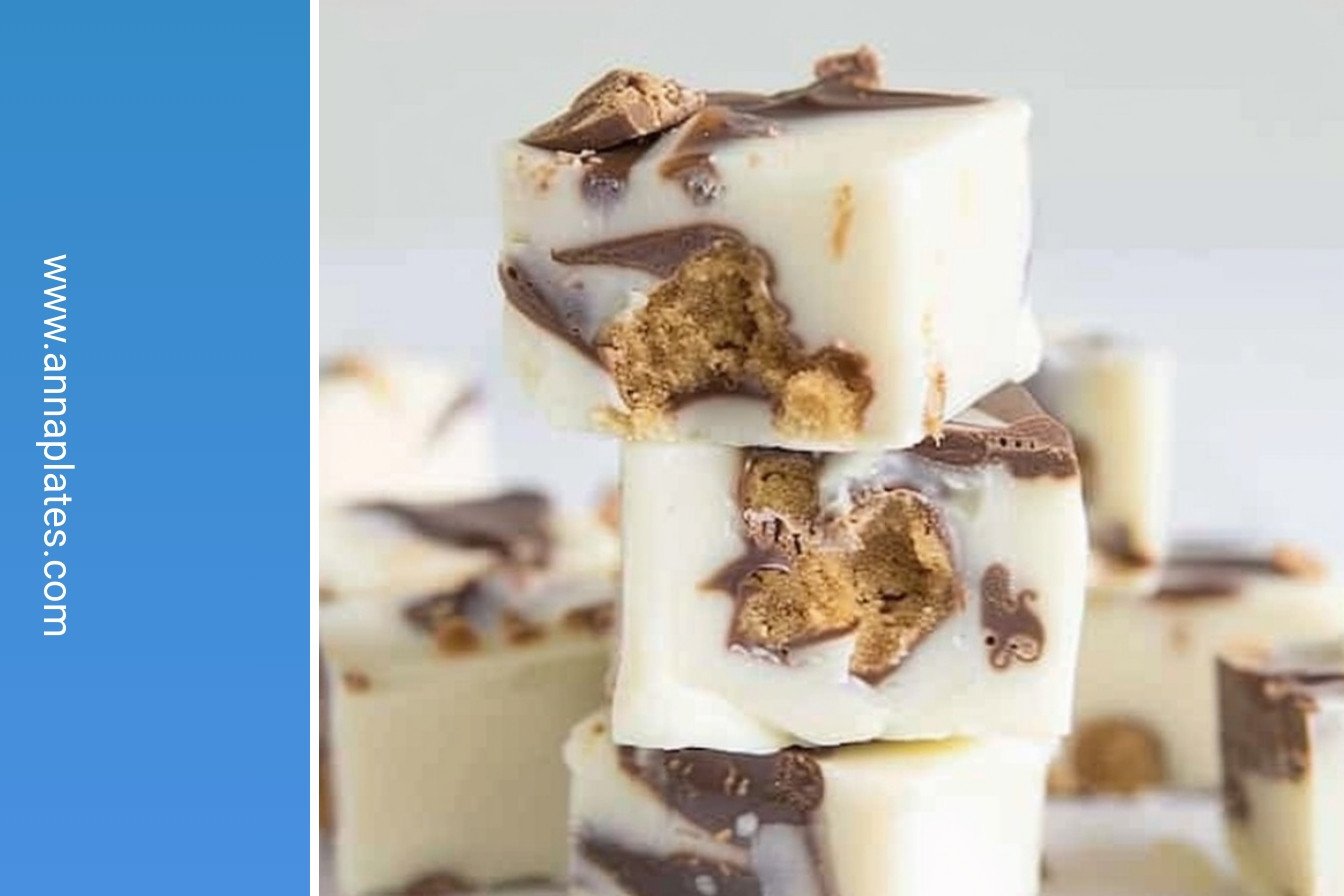 White Chocolate Reeses Peanut Butter Cup Fudge Bites: Crispy golden perfection.