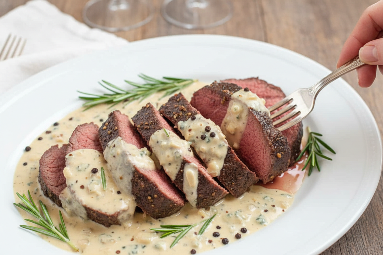 Roasted Beef Tenderloin with Gorgonzola Cream Sauce