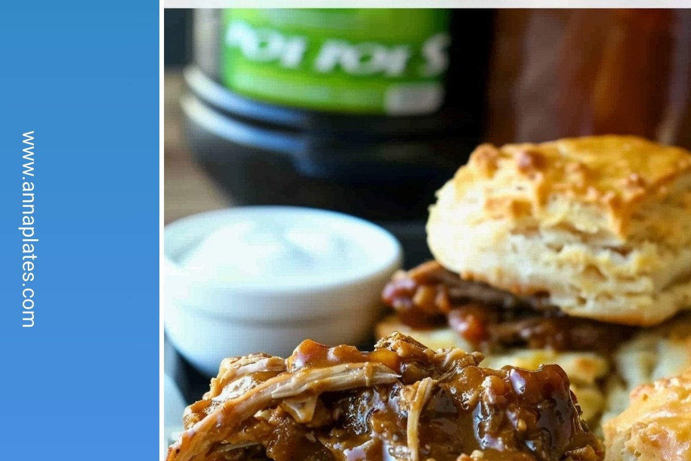 Slow Cooker Dr. Pepper TEN Barbecue Pulled Pork with Lightened up 7UP TEN Biscuits: Crispy golden perfection.