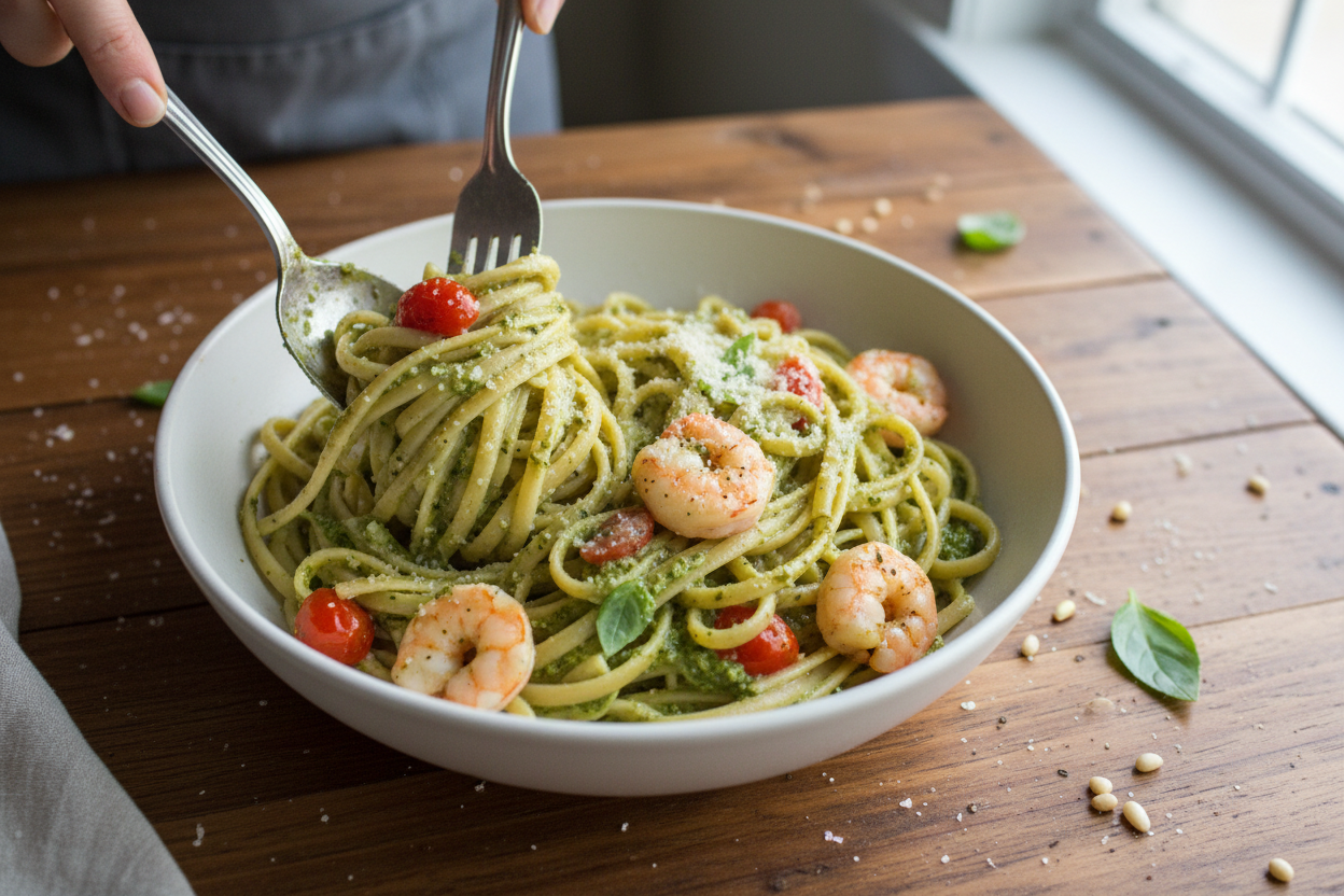Creamy Pesto Linguine with Shrimp Recipe
