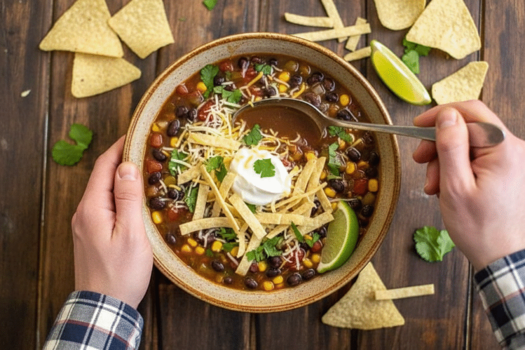 Slow Cooker Black Bean Tortilla Soup Recipe