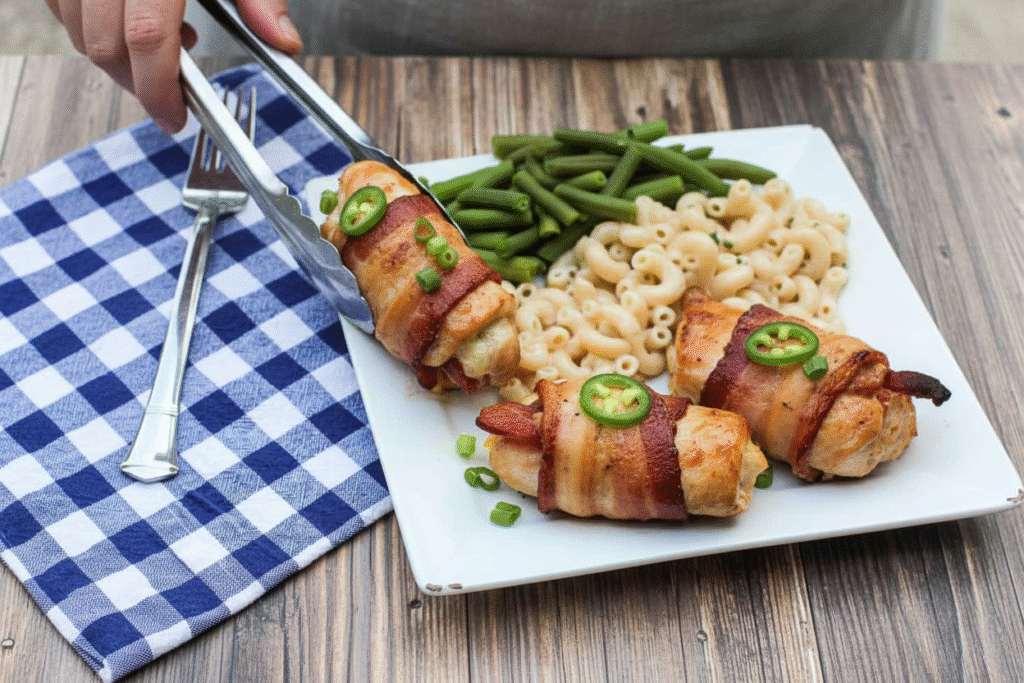 This matters more than you think. Rolling keeps all the good juices inside. Every bite has cheese, bacon, and a little kick. It is a surprise package of flavor.