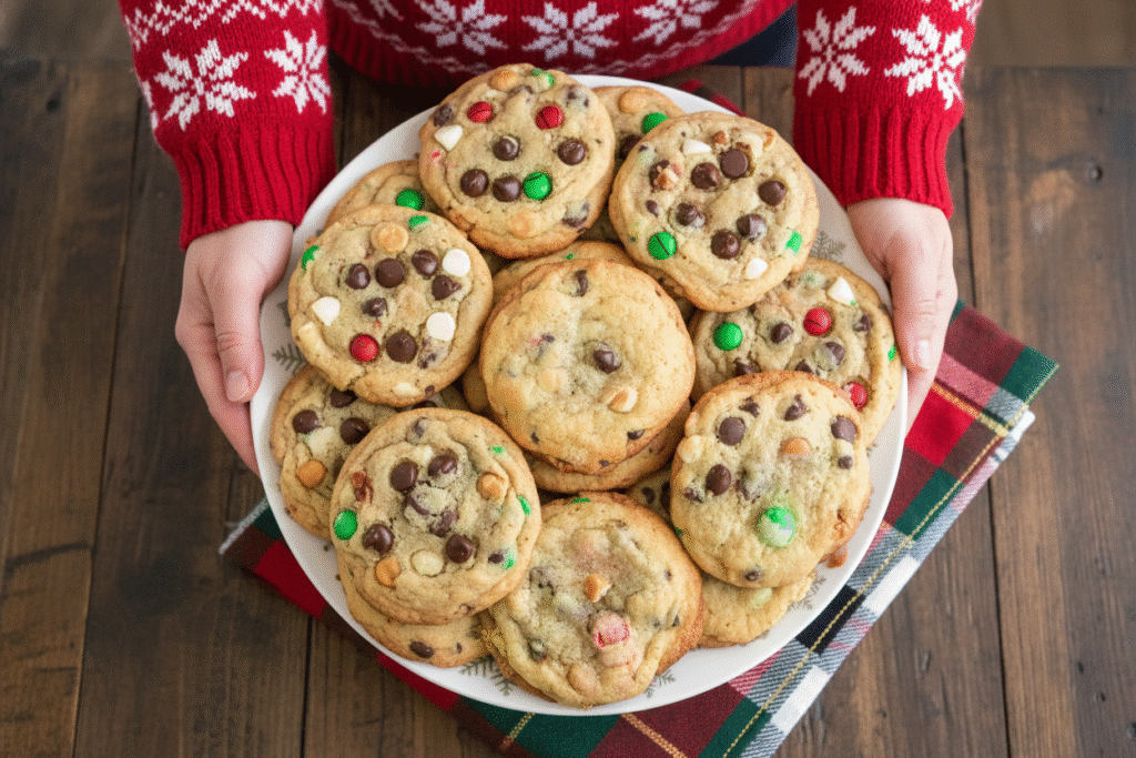 Festive, crunchy Christmas cookies loaded with chocolate chips & holiday sprinkles. Perfect for holiday gifting & cozy baking memories.
