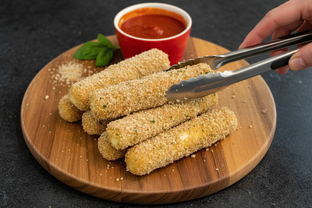 Crispy, gooey homemade mozzarella sticks with just 3 simple ingredients! An easy, crowd-pleasing appetizer ready in minutes. Perfect for parties & snacking.