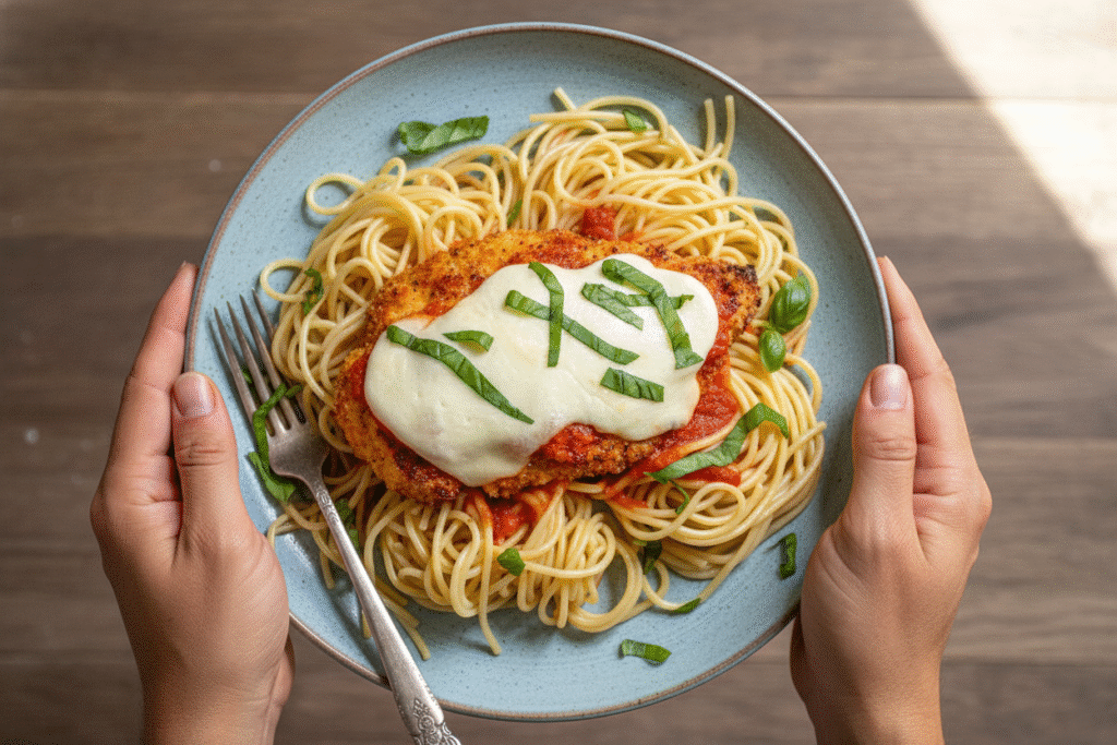 Step 4: The chicken is almost done. Take it out of the oven. Spoon a little marinara on each piece. Then, add two slices of that fresh mozzarella. It melts like a dream. Put it back for just 3-5 minutes. You want the cheese bubbly and the chicken cooked through. Let it rest for 5 minutes. This keeps it juicy. Serve it over your spaghetti with more sauce. Oh, it’s pure happiness on a plate.