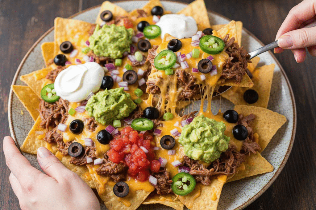 • Breakfast Nachos: Use scrambled eggs instead of beef. Add crispy bacon bits. Top with a drizzle of hot sauce. Perfect for a lazy Saturday.