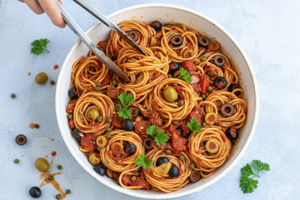 Spicy, briny, and ready in 20 minutes! This easy Puttanesca pasta recipe is a bold, flavorful weeknight dinner the whole family will love.