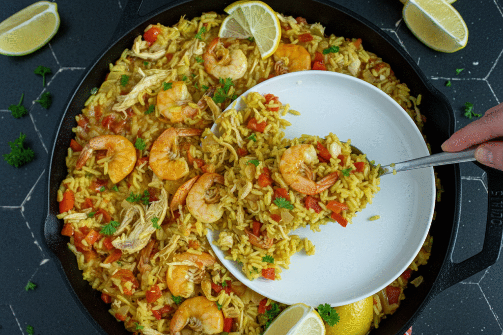 To reheat, add a splash of broth to a pan. Warm it gently over medium-low heat. This keeps the rice from drying out. I once reheated it too fast and the shrimp got tough.