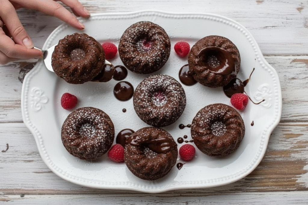 - Step 4: Here comes the pretty part. Take your fresh raspberries. Place one right on top of each unbaked cake. Press it in just a little. They will sink as they bake. It makes a lovely jammy spot. Bake them for about 30 to 35 minutes. A toothpick should come out clean. Let them cool a bit before eating. The chocolate chips will be warm and melty.