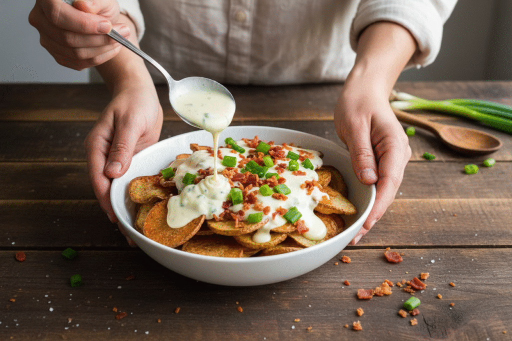 Hello, my dear. Come sit at the counter. I want to tell you about my favorite snack. It turns a simple potato into something magical. We are making baked potato chips with a creamy cheese sauce. Doesn’t that sound wonderful? It’s perfect for a movie night. I used to make these for my grandchildren. They would gobble them up in seconds. I still laugh at that.