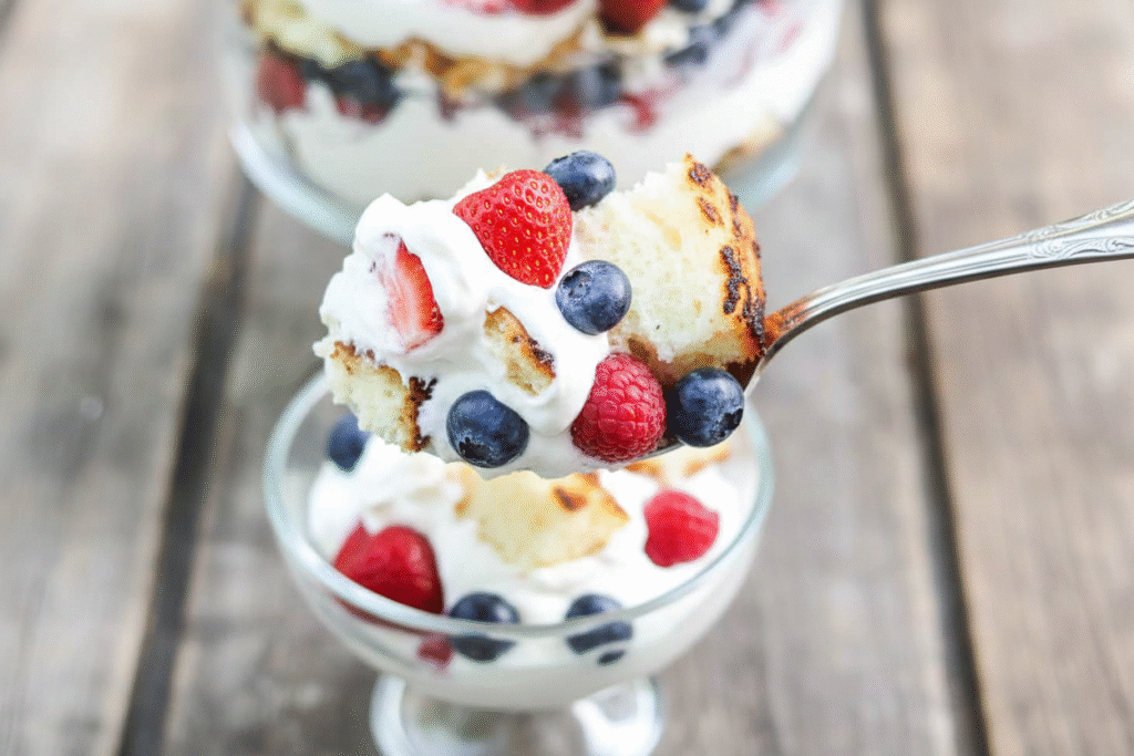Start with a cake layer. Add fluffy whipped cream. Then a handful of mixed berries. Repeat. Keep going until your bowl is full. This matters because making it is as joyful as eating it. It is like building a sweet, tasty tower.