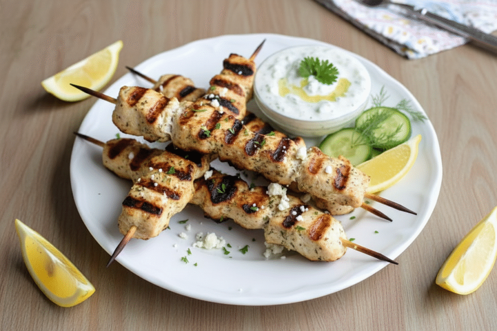 Grilled Greek Chicken Kabobs with Tzatziki Sauce