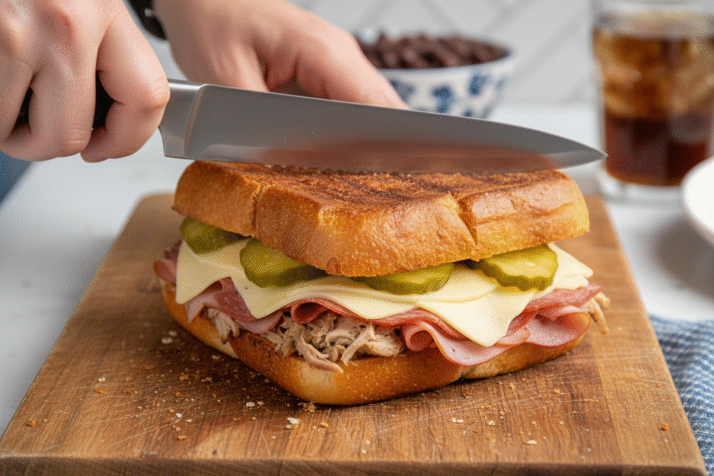 Master the iconic pressed sandwich! Layers of roast pork, ham, Swiss, pickles & mustard on crispy Cuban bread. Easy, authentic recipe.