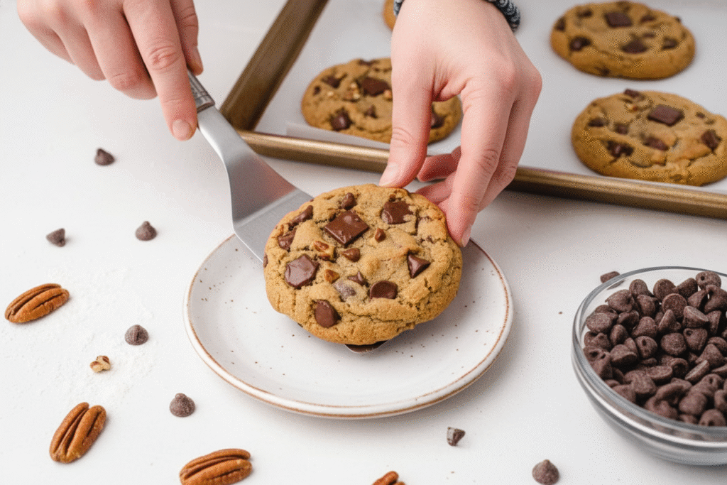 You might think, “Just give me chocolate!” But the pecans are important. They give a little crunch. They also make the cookies taste richer. It’s a nice break from all the sweet.