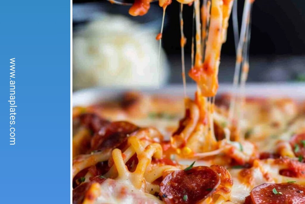 Keywords:Pizza spaghetti casserole, easy dinner recipe, family friendly meals, cheesy pasta bake, weeknight dinner idea