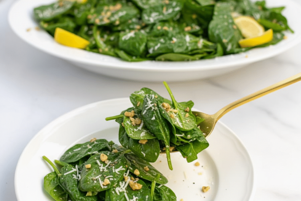 This matters. You control what goes in. No extra sugar or strange chemicals. Just clean, bright flavor. The lemon makes the spinach taste fresh and alive. The oil makes it feel smooth. Do you prefer lemon or vinegar in your salads?