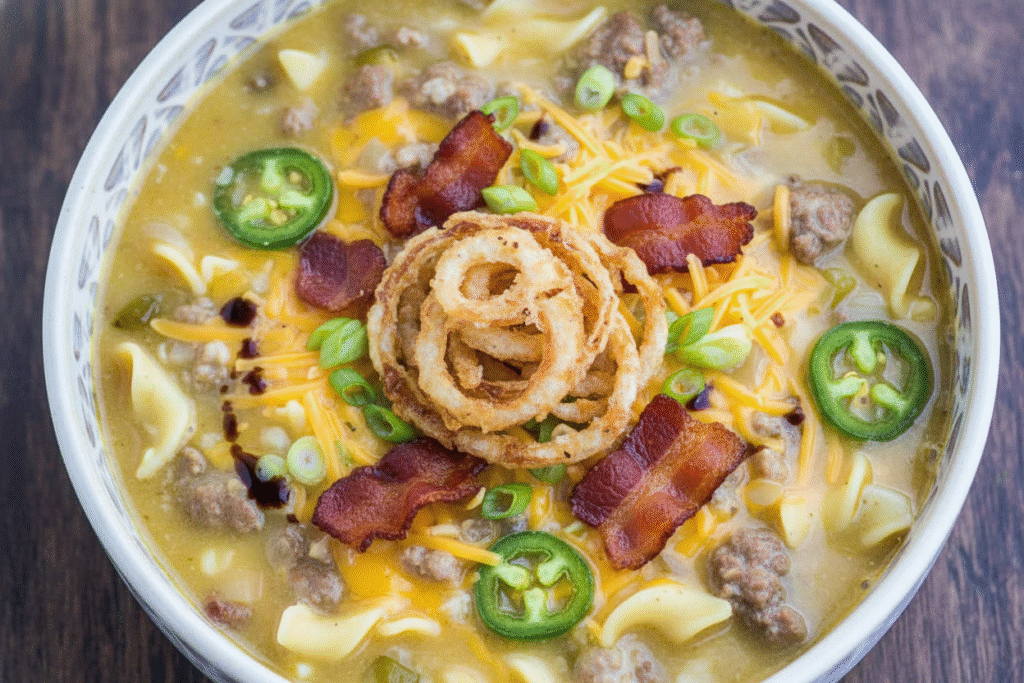 Some days, you just need a hug from the inside. That’s this soup. It’s like your favorite cheeseburger decided to get cozy in a bowl. I make it when the wind howls or someone needs cheering up.