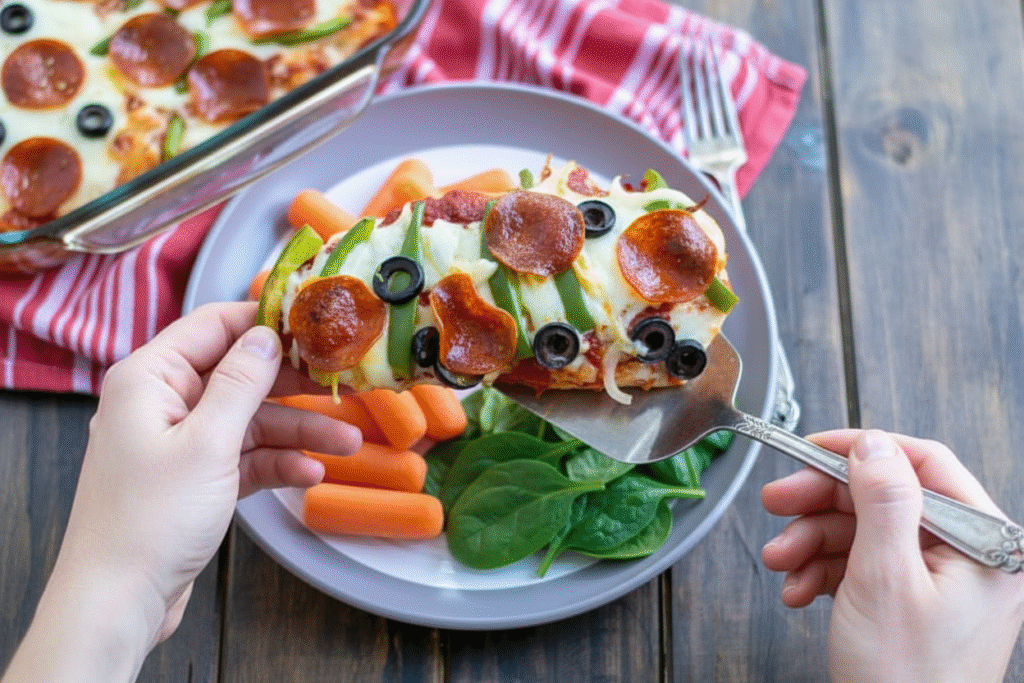 This matters because it’s clever. You get that cozy pizza taste. But you also get a full, healthy meal. The chicken fills you up with good protein. The veggies add a nice crunch.