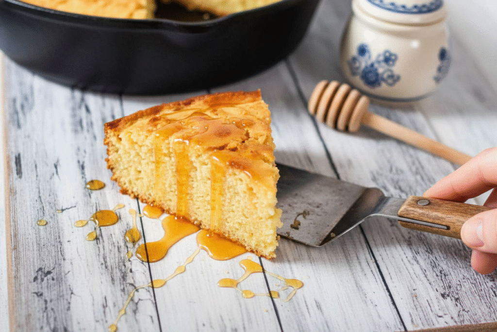 Carefully take your beautiful cornbread from the oven. Let it sit for just a minute. Then, cut a big slice. Serve it warm. I love mine with extra honey drizzled on top. The butter melts right into all those little holes. It tastes like a hug. Enjoy it while it’s warm, if you can wait.