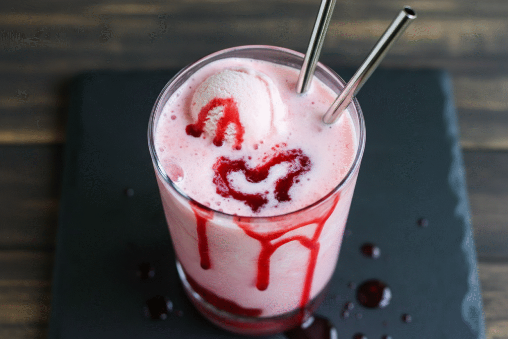 Spooky strawberry floats with a vampire twist! A chillingly delicious Halloween drink perfect for parties. Creepy, cute, and utterly sippable.